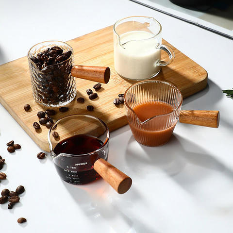 Thủy tinh BoroSilicate cao Espresso & cà phê sữa Dip ly 110ml công suất với gỗ xử lý trà ly & saucers